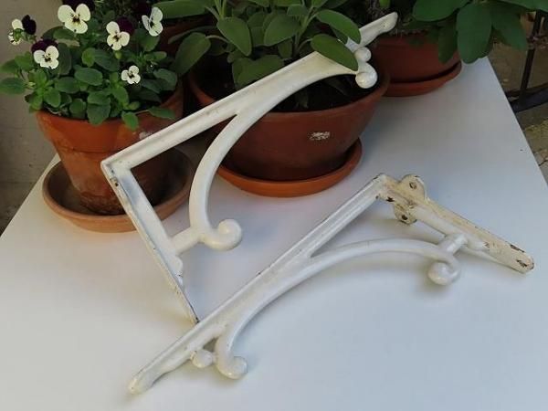フランスの20世紀初頭の、白い鋳鉄製(アイアン)棚受けです。優雅なこの時代独特の、調和のとれた曲線が本当に美しい。