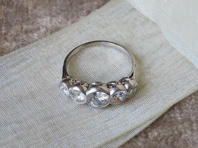 ダイヤは、Max6ミリφ弱、Mid5ミリΦ弱、Min4ミリΦ弱で、5石で約2.20カラット相当。