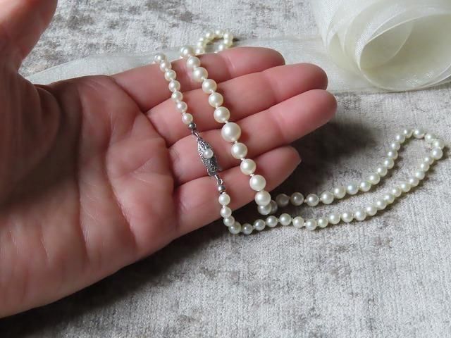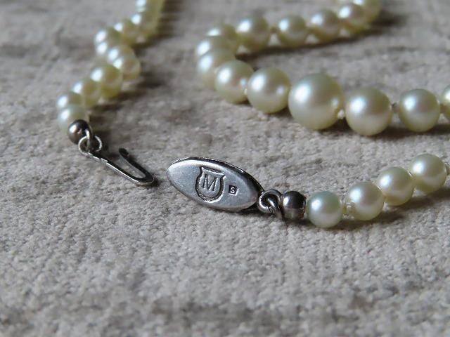 1940-50年代のMIKIMOTO製。養殖真珠の1連ネックレスです。イタリアに輸入されたものです。